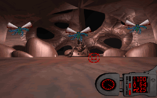 F: In this room, there are several small spiderlike creatures (which shoot fireballs at you) and large hornets (which sting)