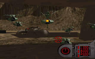 As you may have gathered from the mission introduction, you need to follow that pod that appears through the canyons. Don't worry, you can't shoot the pod, but you can lose track of it. Several times, a second pod will appear and then the two pods will go down different paths. Always follow the blue pod, never follow the red pod.