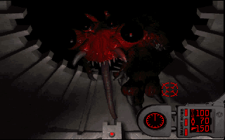 Creature Shock is a unique combination of an action/arcade game combined with the exploration and discovery more often associated with role playing or adventure games. Unlike most action games, the enemies in Creature Shock have only one or two weak spots and can only be damaged by shooting them in those weak spots. Hence, combat is at a much slower pace and is far more tactical than merely reflexive.