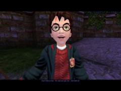 Walk to the stairs leading down at the right. Your class mates are calling you to come up. Don.t pay attention to that yet. Walk down the stairs. Downstairs some of the kids are offering you to trade BB Beans. Don't trade them yet because Harry doesn't have enough of them yet to trade.
