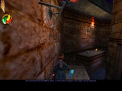 Ron but don�t enter the door yet. Turn left and go down the stairs. Open the