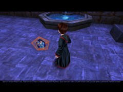 Walk towards the chest in the right corner of the room. Cast the Alomohora spell on the chest to get the bronze Wizard Card #51:Ethelred the Ever-Ready, Medieval dates unknown. Then walk to the left corner and use the Savebook...