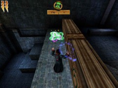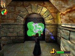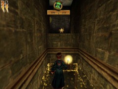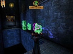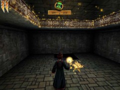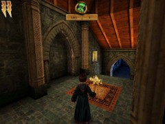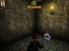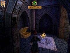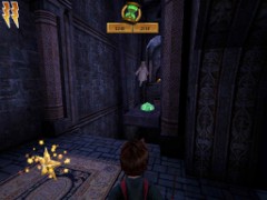 Run and jump to the ledge with the Ecto and Skurge it. The two ledges will start moving now. Make a tricky well-timed jump to the other ledge and cast Flipendo on the opposite sign. When you do this, you'll see a secret passage being opened BEHIND YOU!!! So, turn around and jump from the moving ledges. Turn to the right and enter the room to find the silver Wizard card # 59: Gregory the Smarmy Medieval, dates inknown.