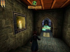 But first go save somewhere. Go out of this Dungeon entrance and up to the Monumental staircase. Go all the way right to the Gryffindor Dormitory. Pass the portrait of the Pink Lady and go in. Open the chest and grab a Bean. Then, save by the Book at the fireplace.
