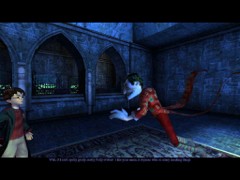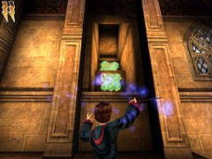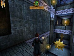 Now cast Lumos on the Gargoyle. Run down the ramp and jump on the