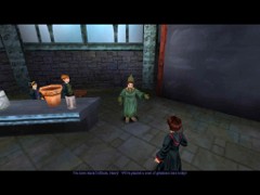 Harry enters a small courtyard with a birch tree and a chest in the corner. Cast Alohomora on it and get some Flavored Beans. The fellow on your left doesn�t trade.