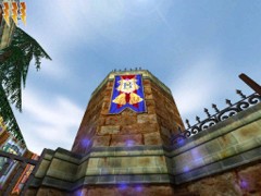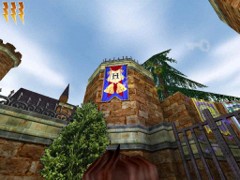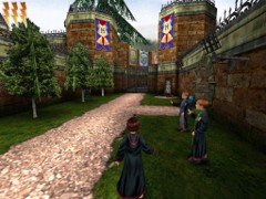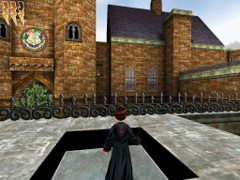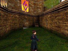 Notice two brightly colored Banners featuring a letter �H� on each tower of the Quidditch entrance. Go to the entrance and cast Alohomora on each Banner.