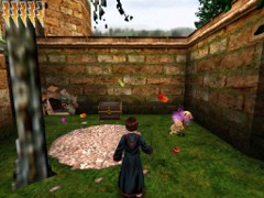 Go inside and grab all Beans on the grass. Cast Diffindo on the vines that block a Gnome hole and release the Gnome. He will take care of the Horklumps Mushrooms.