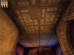 Leave this room and on your left proceed to the spiral Staircase up to the Gryffindor Common Room. Pass the Pink Lady and climb up the stairs at the other side of the room. While standing on the balcony look up at the ceiling. Isn't that a strange tile?