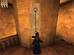 Cast Alohomora on the tile. It only moves a little... Isn't there nothing else to happen? Well... yes! Turn around and see that one of the pillars has opened! It seems to contain a rope!