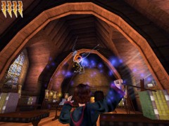 up to the Dinosaur skeleton hanging from the ceiling and do not cast Flipendo on