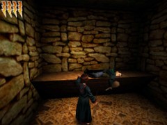 up and jump left or right to the narrow ledge. Walk past the Gargoyle to a dark