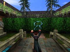 again. Standing on the bridge, cast Alohomora on the next hedge section above