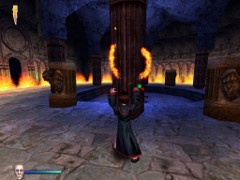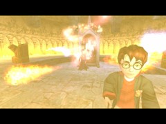 will start throwing magic fireballs at Harry: watch them. You can hide behind