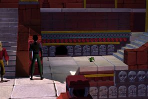 and find a stone jaguar on a pedestal. Tulio sees a lever behind the grate