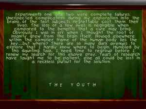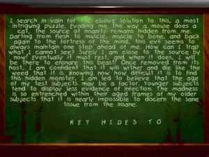 Sanitarium is a unique game that blend thriller and psychology nicely. You play the role of Max. The story is about the journey of Max to discover his tragic story and confront the demons from his past. Slowly, as you gather more information, the pieces begin to fit together, and it becomes clear that much more is at stake that one man's self-discovery. The game is divided into nine episodes, and within each episodes he discovers what has happened to him.