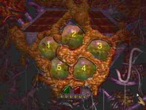 2,5,3,1,4. Then change your shape again into Grimwall and push the big head statue. A