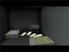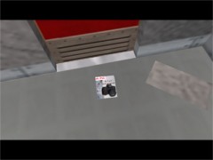 the piece of paper. Now have a close look at the box that�s standing on the shelf. At the left side you�ll see a cd sticking under the box. Get the cd. Leave the room and push the red button to take yourself down. Exit the house and