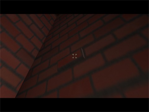 just press the brick once more. While you are standing on the platform wait until it takes you up. Walk towards the closed door. Notice the strange lock at the right side of this
