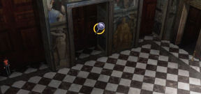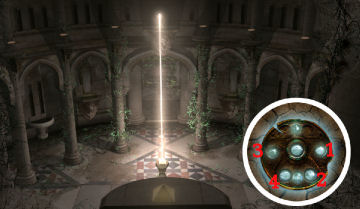 Look at the rotating circular stones on the floor. Take note of the 2 statues.