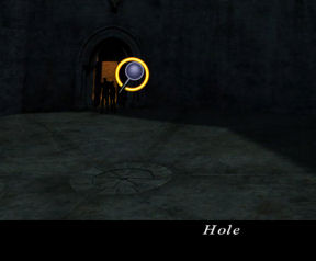 Go back down to the next screen. To the right of the entryway that you exited from, look close at a hole.