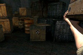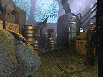 Gameplay: After installation, select a player number from the glyph at left inside the design. The main menu is accessed by pressing the ESC key. To show the label of the glyphs on the main menu, move the cursor over the different glyphs. Top right is the sound levels. Here adjustments for voices, music, sound effects and overall volumes are found. The center glyph is the options, where crosshair, 16-32 bits, mouse adjustment, subtitles, smooth mode and language selections are done. Left on main menu is save-load game selection and far left is exit game. Save game has a check for confirm and X for abort. The saved game is seen as a graphic with time and date done. In all pages, the 'return to game' glyph is at bottom right of the screen.
