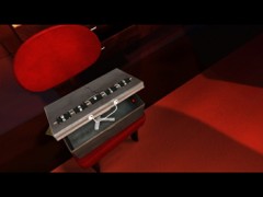 Turn to the left and walk forward. Take the crab pincer from the table. Turn around and take a coin from the table. Turn to the right and walk forwards. Pan to the right and take the ashtray. Turn to the right and walk towards the windows. Pan to the right and see the life hammer in the display on the wall. Smash the glass of the display with the ashtray. Take the glass breaker out of the display.