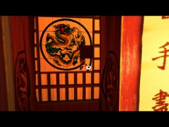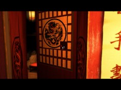 Turn to the right and walk towards the stairs. Turn to the right corner. Notice the closed curtain. Open the curtain to face a nice (?) sliding puzzle. Behind this sliding puzzle is a door to the betting room with the sleeping man. In order to open up this door you have to solve this sliding puzzle. While you are trying to solve the puzzle the Chinese guy dressed in blue will spot you from time to time. When this is the case, quickly turn around and go one step forward and return to go on with solving the puzzle. Remember that if you aren't quick enough when this guy spots you he resets the puzzle and you have to start all over again! I guess you would like to know how the image of the sliding puzzle has to look. That is the easiest part. Just look at the image on the curtains! Believe me I'm very bad in solving these sliding puzzles. So giving you the moves I've made won't do you any good. If you can't solve this one yourself just send me an email and I'll send you my saved game! After uncountable moves I finally made it...