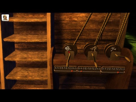 After you gave the correct answers he'll give a winch code. Study this winch code! Head back to Miss Sullivan. Talk to her about the poker game. Off you go to the poker room. However, before you can enter the poker room you have to lower one of the sails. Nope... you can't just pull a rope to lower the sail. You have to turn three wheels the correct way to do this.
