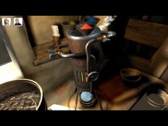Place the bucket with handle on the hook above the well. Pan to the right and turn the lever of the well. Take the doll out of the bucket and give it to little Jyan. Talk to her once more about the locked door. Pan to the left and walk to the house with the wheel against the wall. Turn to the left and move the wooden pole laying on the ground. Pick up the key. Put the key into the lock and turn it around. Enter the workshop.