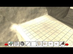 Pick up the cut stone. Drop the next stone for cutting on the floor. Now we are going to cut the one but biggest missing stone with the seize of 5 x 4. Drop one of the stones for cutting on the floor. Use your stonecutter's tool four times on the stone. Pick up the cut stone.