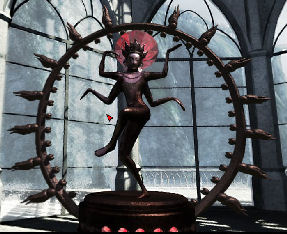 Open the door to the inner chamber: Go back to the temple. Blackwood says that you need to turn the trident to the pointing downward. Go to the mandala at opposite wall from the dragon. Click the medallion on the trident glyph. Turn it to the bottom. The wall opens to a puzzle.