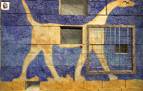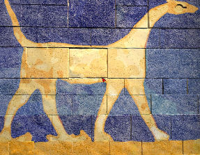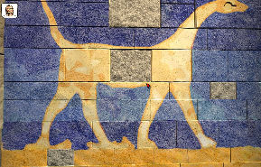 Go inside the temple and look around. See the blue bas relief of the dragon of Marduk. After the prophecy about the blind man, we now see the dragon.