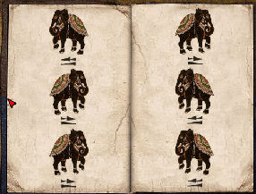 Take note to see if what is in the text can be seen around here. There are 8 torches that lead to the stand across the room and 4 bull heads on the posts.