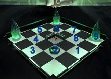 There were 4 fantastic images of bulls upstairs - press the 4th dark tile counting from left to right. See some block of stones rise and some drop down.