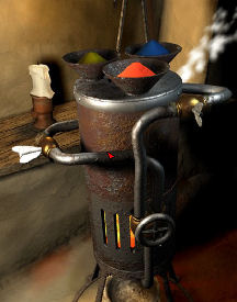Make paints - Go back to the stonecutter's house. Look at the paint maker ensemble at the right of the window.