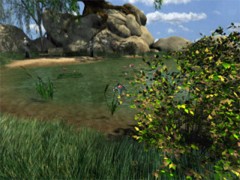 Turn to the left and walk along the water until your way is blocked by a big bush.