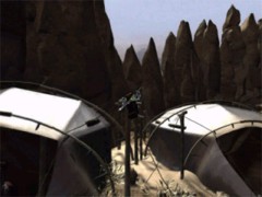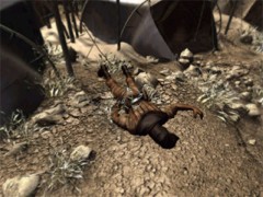 Now you're back in the dessert and you're standing between two tents. Turn to the left and pick up the torch from the tent. Look at the right and you'll see a guard standing in front of the two tents. From this place aim on his head with your torch and knock him down. Take his dagger from the floor and the keys from his belt. Set free your former Savior by cutting his cuffs with your dagger.