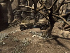 Turn to the right and walk towards the first open jeep with the machine gun attached to it. Look at the dashboard. Use one of the bunch of keys on the dashboard. If your first keys seem to be the wrong ones, just use the others.