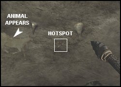 | The four animals running across the wall are the targets and the spear on the ground is used as a weapon. It may take a bit of practice, but it's not too difficult to hit the targets. | ||||