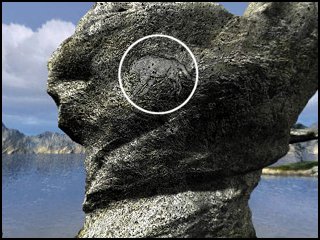 | Continue past the bear and float across (on the log) to the large rock below the giant pod. Make your way to the top along the circular path. Study the rock face as you go, noting the painting of a white wolf near the bottom. Remember where else there were wolves on a wall? The painting is used to return to the cave near the archaeologist's body. From there, going through the wall now brings you back to this point. | ||||
