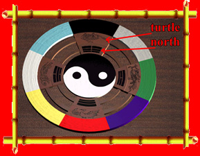 Down: South - Bird - Red, Left: West - Tiger - White.
