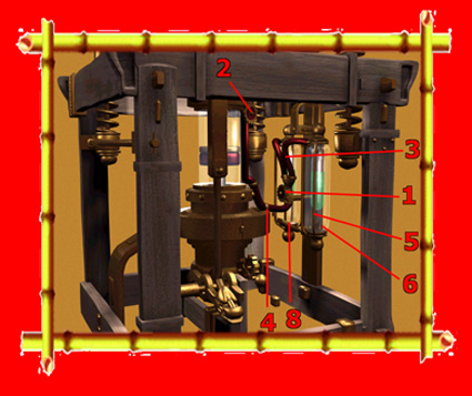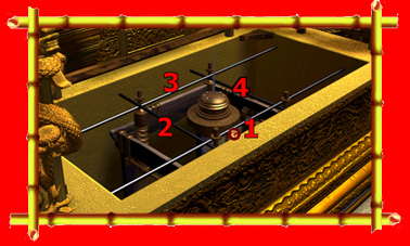 Now you managed to not get killed immediately, you still need to disable the poisoning device. Again, another sequence of actions has to be taken. Act like the following list where the numbers in front of the description correspond with the numbers in the picture.