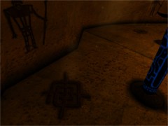 Now head back to the cave near the lake behind the waterfall. Exit the cave near the place where you placed the two buoys. Walk towards the little rock next to the lake and press the Journey stone. Press the image to end up in some sort of store room in D'ni-city. Read all the books and notes to learn lots more about D'ni-kings and D'ni-habits such as marriage etc. When you are finished, link back to Relto. Hmmm... nice carpet!