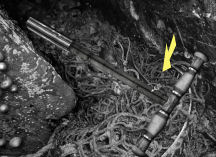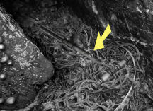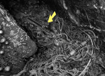 Go left by the lobster trap and look close on the prints in the sand. Use the picture of the boot sole on the prints on the sand. A match, a perfect match.