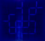 Enter the hall and see a puzzle on the door. Turn right, enter room and see a blue and yellow framed cloth with lines. Note the lines. Go out to the hall and right. See a green lined pattern on the locked door.