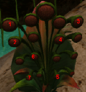 The plant on the left needs 9 segments, the middle needs 13 segments and the right plant needs 10 segments to get to full height. These are found out by shooting randomly to to the top.