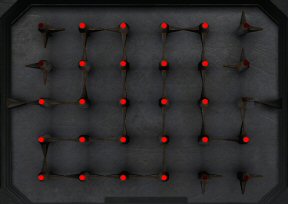 Fan-Cable puzzle - The object of the puzzle is to lower all the fans to enable passage to the other side. There are only 2 chances to do so.