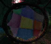 When done, enter the tower and it will automatically go to the fifth floor. Exit to a ramp that will lead to the building seen through the telescope. The left inner side of the gates are blocked. Since you arranged the correct 'red' gate to the right outer side, walk the ramp and enter the building.