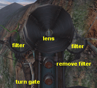 The top button removes the filter while the lower button rotates the gate seen through the telescope.